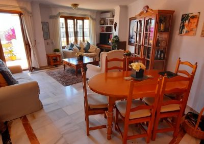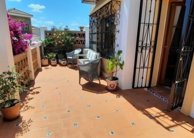 One of the few 3 bedroom townhouses in the unique Andalusian style development in Mijas Golf with 4 communal swimming pools.