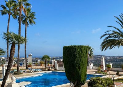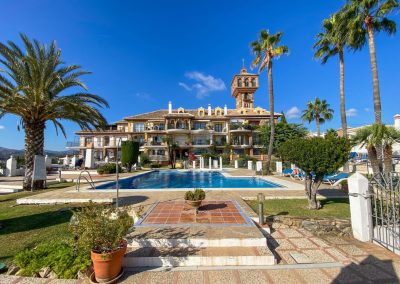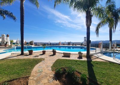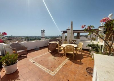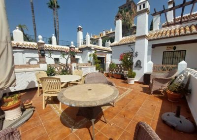 Adosado de 2 dormitorios con orientación sur en la exclusiva urbanización de Puebla Aida, con estilo propio andaluz en Mijas Golf, impecablemente mantenida, con 4 piscinas comunitarias, y encantadores rincones, callejones, plazas y fuentes por toda la urbanización.