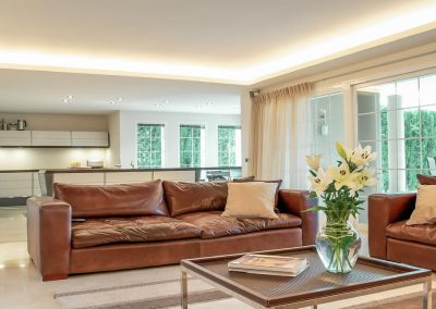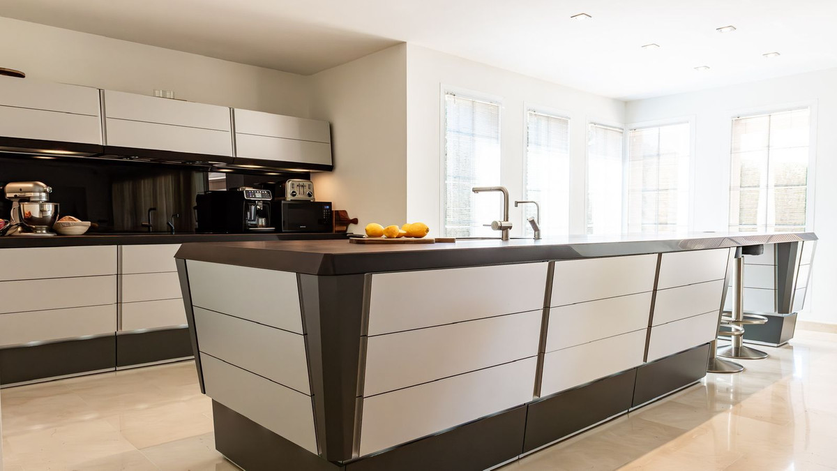 Set on a generous 1.500 m² plot, this contemporary villa boasts 618 m² of living space and is designed to the highest standards. The open-plan layout features a spacious family living area with a sleek, state-of-the-art american-style kitchen, crafted by renowned danish designer Jacob Jensen.