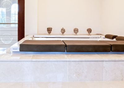 • A supersized bedroom with a private Jacuzzi and water fountain.